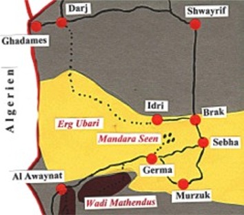 Abfahrten; ca. 60 km vor Idri (bei N 27°33,947 / E 012°41,874): Beginn