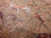Am Ziel erwartet einen ein Unterstand, der als "Wartehäuschen" dient, und in dem man sich schon auf Schautafeln über die Felszeichnungen informieren kann. Zur eigentlichen Sehenswürdigkeit, die Felsmalereien(**) um die White Lady herum liegen ein paar Meter höher und sind immer nur gruppenweise zu besichtigen. Man bestaunt auf einer glatten, im Schatten liegenden Felswand eine große Zahl von Tieren und Menschengestalten. Nach einiger Zeit - vor allem, wenn der Führer in der Richtung nichts sagt -  fragt man sich, wann es weitergeht und man endlich die berühmte White Lady sehen kann. Die Enttäuschung ist dann schon gegeben, wenn man erfährt, dass man sie längst gesehen, aber nicht als solche identifiziert hat.
