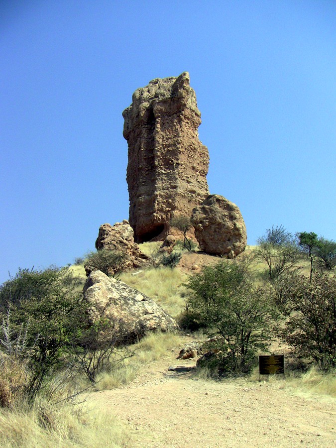 Die weithin sichtbare Gesteinsformation befindet sich auf Privatbesitz (20 NAD / P).