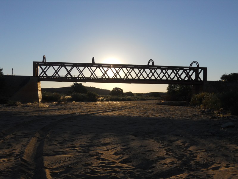 Auf einer eher rustikalen Betonbrücke wird das nun breite Flussbett des Fish River überquert.