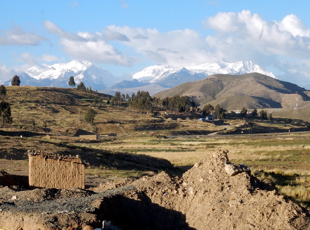 Weiter geht es tatsächlich auf einer Art Autobahn, während unsere Reiseführerin uns ausführlich und amüsant über Land und Leute unterhält (Bild 10). Zuerst kommen wir flott voran, doch zu früh gefreut. Kaum erreichen wir den Rand von El Alto (die mit 4000 m höchste Millionenstadt Südamerikas), stecken wir mitten im Chaos. Eine Protestaktion hat alle Hauptstraßen lahm gelegt und wir hängen ganze zwei Stunden fest, bis unser Fahrer über unbefestigte Buckelpisten einen Ausweg findet. Erst um 21.00 erreichen wir endlich und deutlich erschöpft mit La Paz unser Tagesziel.