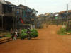 Ausgerechnet an der schmalsten Stelle des Dammes hat sich ein kleines, mehr als malerisches Dorf angesiedelt und selbst unser kleiner Bus muss sich - während er den Schlaglöchern ausweicht - mühsam vorbei an Karren, Verkaufsständen, Hausvorsprüngen oder sonstigen Hindernissen quälen. Das Leben spielt sich entweder auf der engen Ortsdurchfahrt ab, oder in der oft nach vorne offenen unteren Etage der Holzhäuser, die fast in Griffweite vorbeiziehen. Schaut man zwischen den Gebäuden hindurch, bemerkt man, wir die Rückseite bereits auf hohen Holzstelzen steht. |